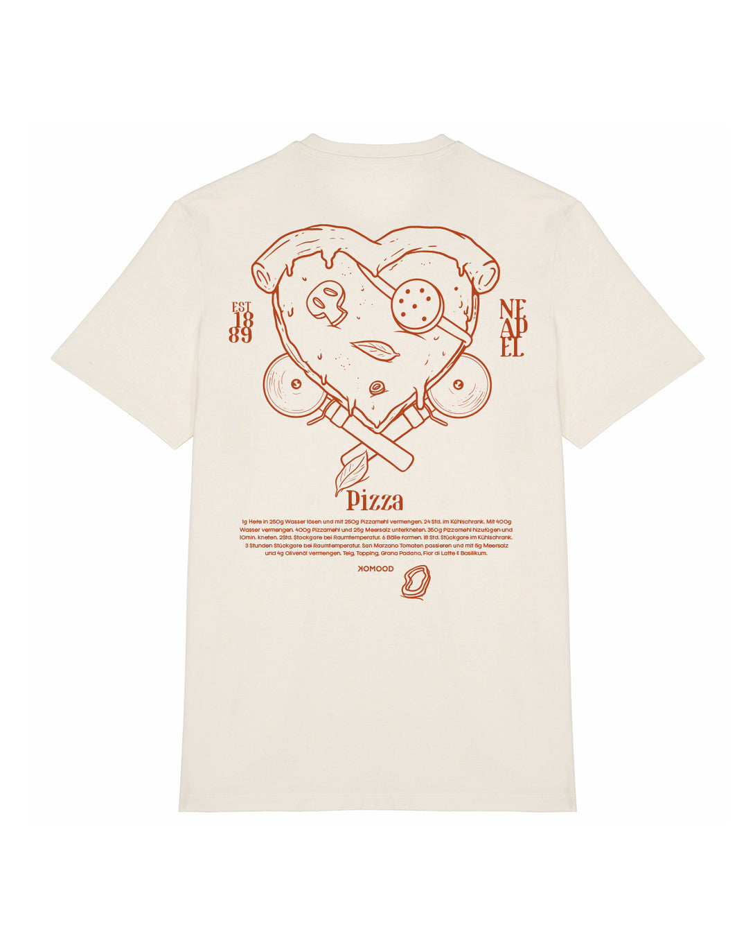 Für alle Pizzapiraten und jene, die es noch werden wollen! Unser Pizza Shirt kommt mit einem gestickten Stück Pizza, dem Front- & Backprint auf feinster Bio-Baumwolle daher. Natürlich ist das Rezept auf dem Rücken für gute neapolitanische Pizza und wurde von uns mehrmals auf Herz und Nieren geprüft <3